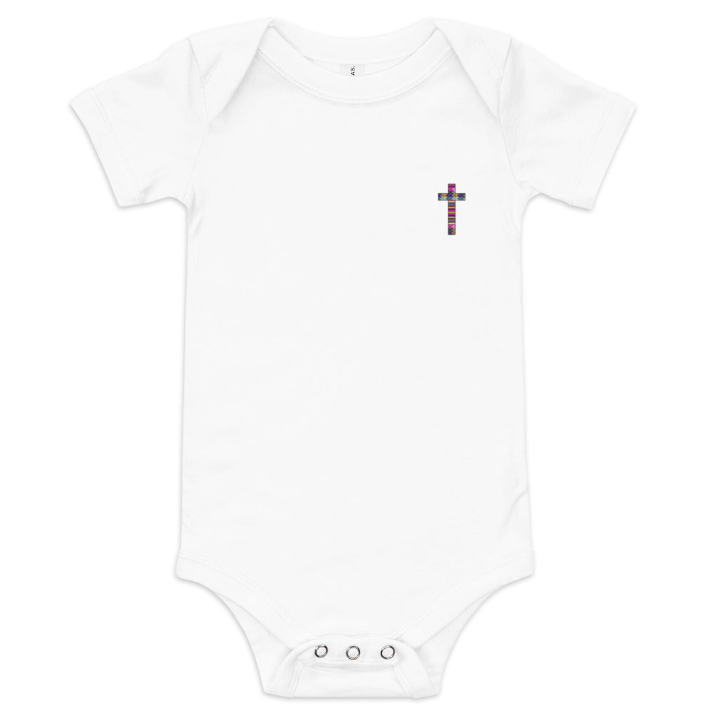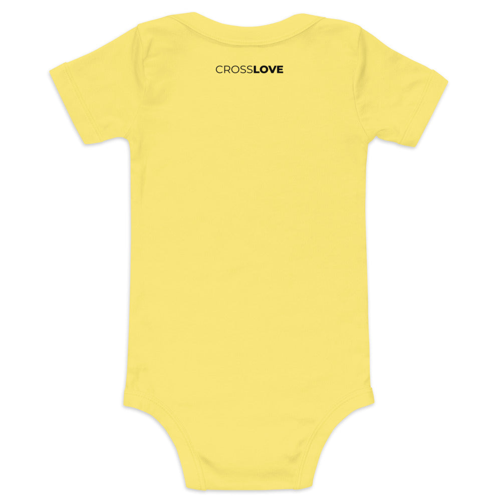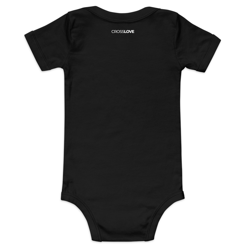 Este body de bebé representa la búsqueda personal a seguir los pasos de Cristo como guía y modelo de vida. Nos invita a encontrar el sentido, dirección y propósito a través de una relación profunda con Él.