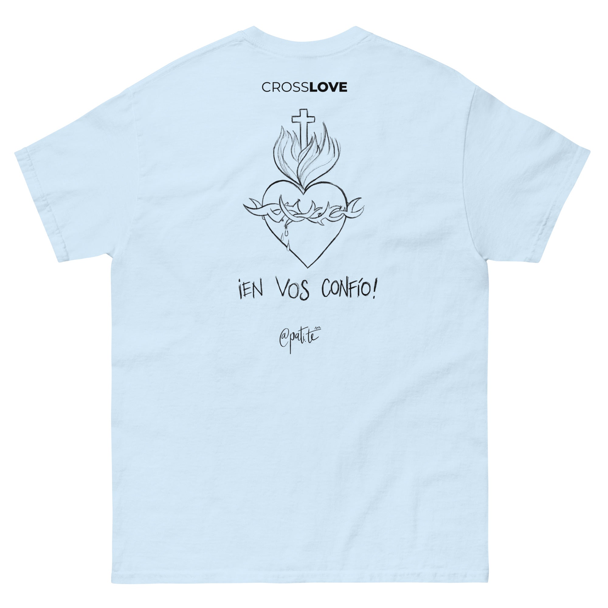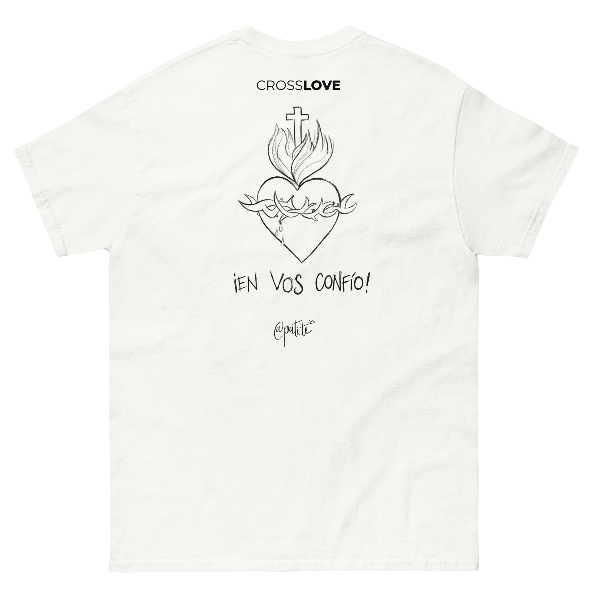 La camiseta 'En Vos Confío' de CrossLove es un tributo a la devoción y el amor incondicional. Este diseño exclusivo representa la profunda conexión espiritual con el Sagrado Corazón, un símbolo de compasión y redención. Lleva contigo la fe y el amor en esta camiseta única que te recordará la importancia de la devoción y la esperanza en tu vida diaria.